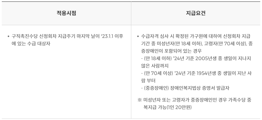 예를 들어, 미성년 자녀 2명을 부양하는 경우 매월 70만 원씩 6개월 동안, 총 420만 원을 받을 수 있습니다. 취업에 성공하면 최대 150만 원의 취업성공수당도 지급됩니다.