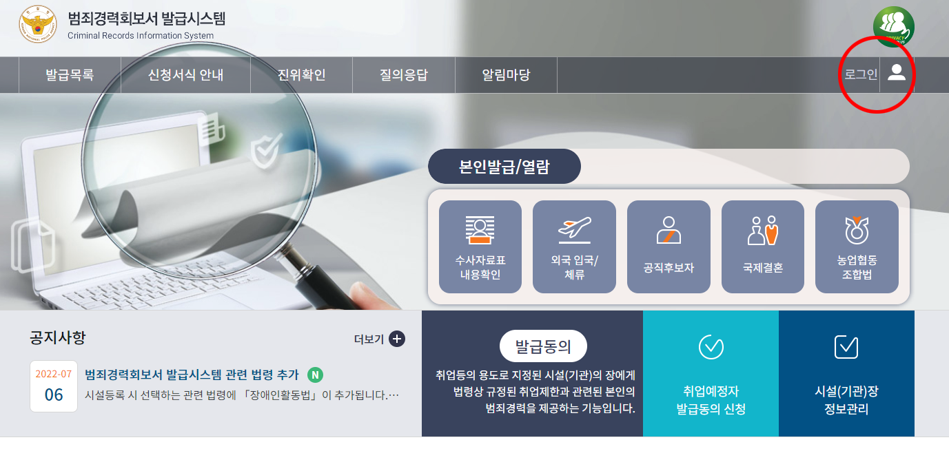 1. 범죄경력 회보서 발급시스템 접속