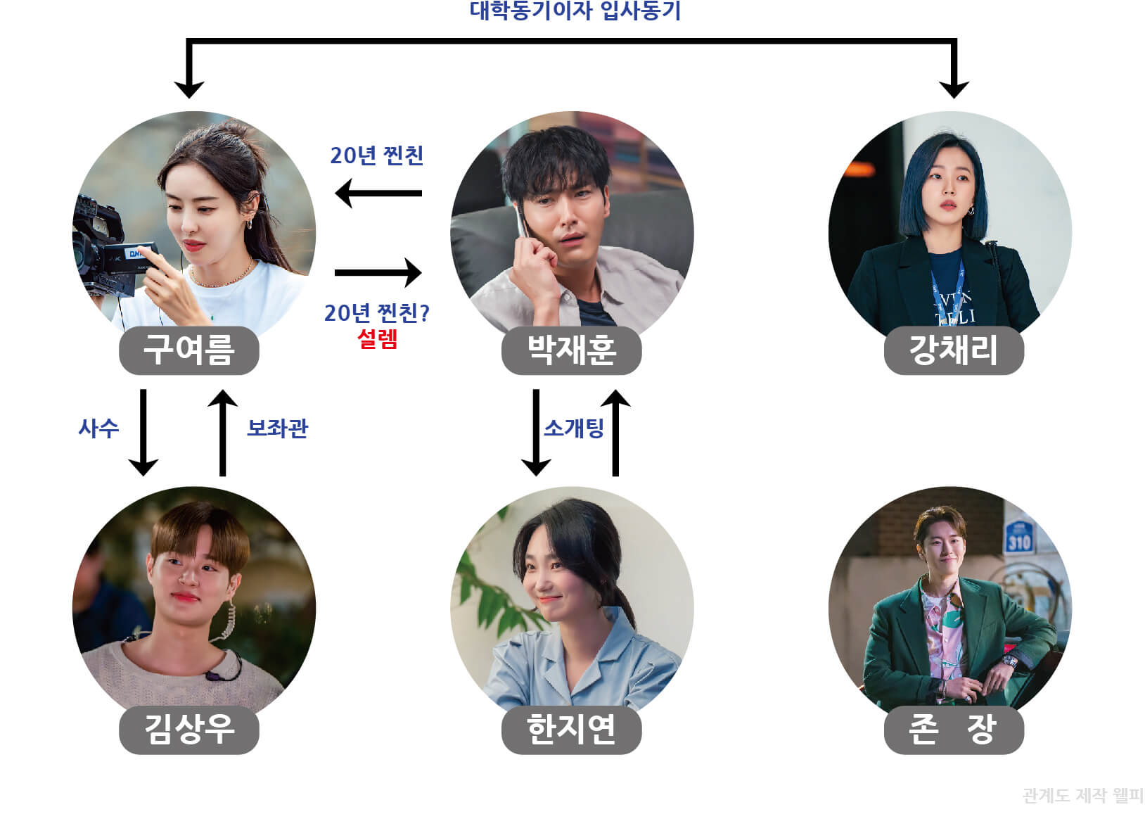 재훈과 소개팅으로 엮인 후에 연애 리얼리티쇼 <사랑의 왕국> 출연자로 다시 만난다.